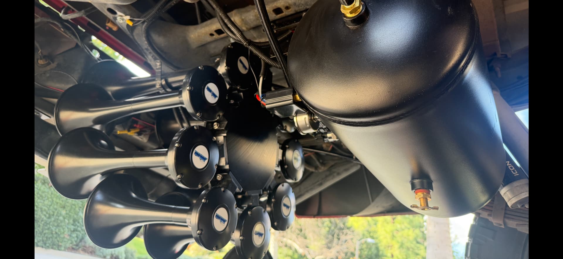 For this build, Chris mounted the horns securely along the frame rail and positioned the tank and compressor setup underneath the truck for a clean, tucked-away installation. The separate compressor configuration of the Octohorn 544K Train Horn Kit gave him flexible mounting options, which is perfect for trucks like the F250 where space planning matters.